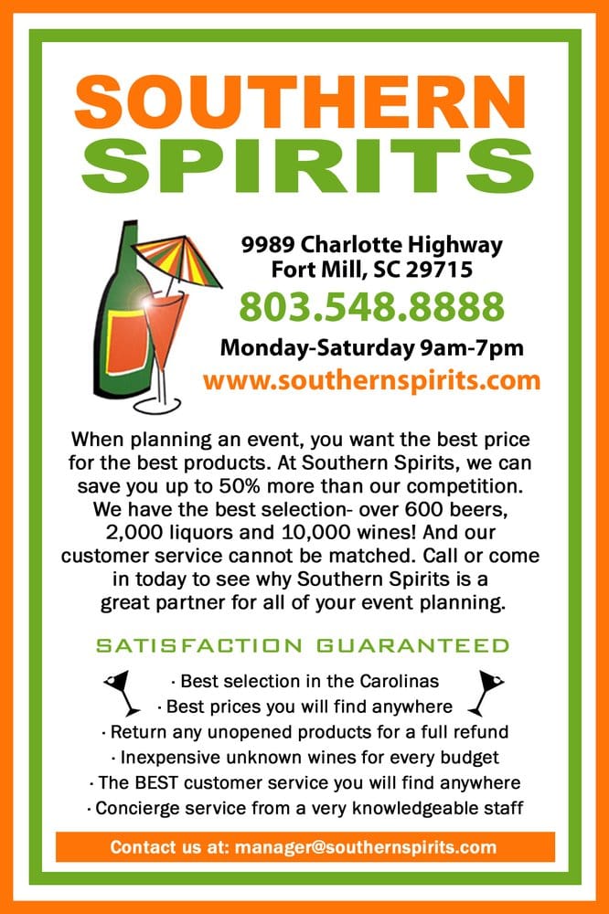Discover the hidden gem of Fort Mill, SC, with Southern Spirits - a top-rated liquor store offering a wide selection of whiskies, mixers, bourbons, store picks, and allocated bottles. Situated at 9989 Charlotte Hwy, this establishment provides convenient amenities such as takeout options, wheelchair accessibility, credit card payment acceptance, private parking lot, and bike parking.